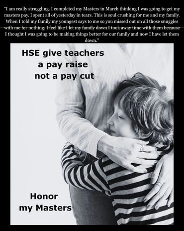 “As a teacher for the past 14 years, I used my personal time & money to pursue a master’s degree. My husband & I saved for the program, believing it would benefit both my students & our family. Now, I will not receive the master’s pay increase I worked toward, and I can’t afford to pay off my student loans. We’re facing financial hardship that may force one of us to leave the profession altogether.”